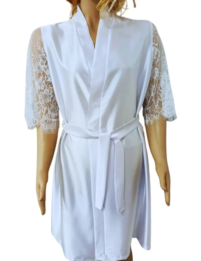 Acesta este fabricat dintr-un material usor si confortabil, cu o croiala lejera si prindere prin cordon astfel incat sa poti sa-l porti in timp ce iti pregatesti machiajul si coafura pentru ceremonie.