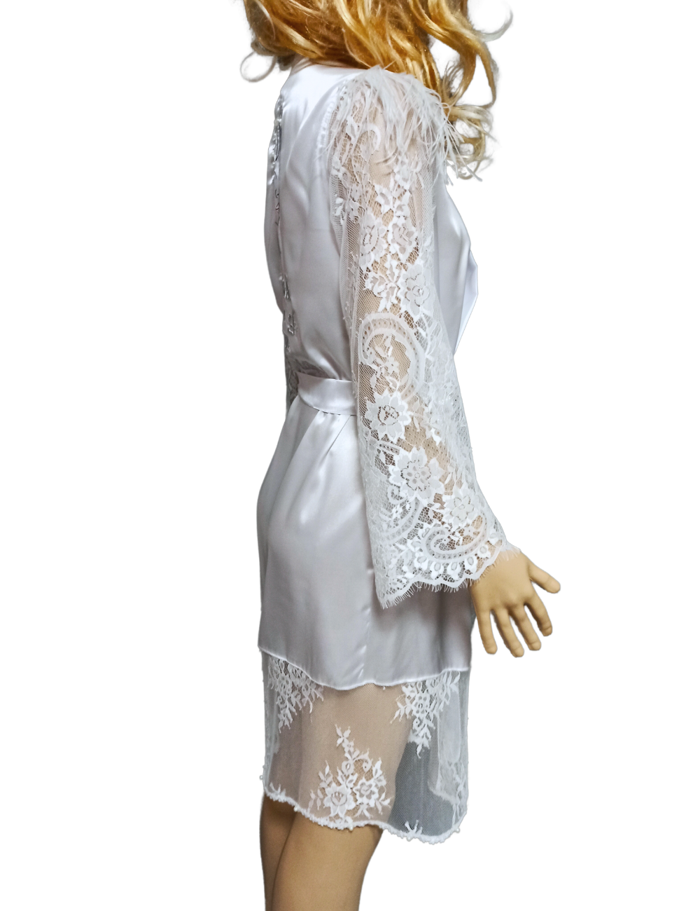 Acesta este fabricat dintr-un material usor si confortabil, cu o croiala lejera si prindere prin cordon astfel incat sa poti sa-l porti in timp ce iti pregatesti machiajul si coafura pentru ceremonie.