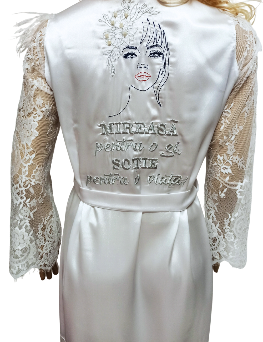 Halat Mireasa si Sotie – un accesoriu elegant si practic pentru orice mireasa in ziua nuntii! Alege sa porti unul din halate personalizate Georgina Artwork si sesiunea foto din ziua nuntii va capata cu siguranta o nota personalizata si memorabila!
